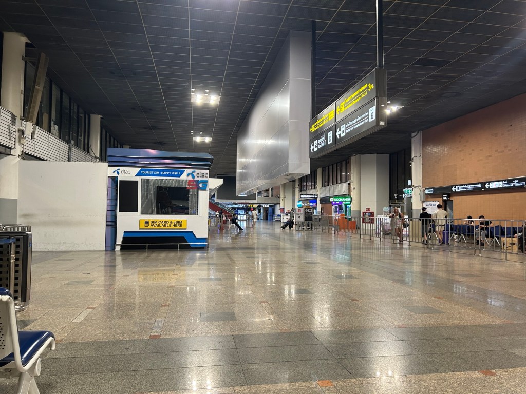 First order of business was to buy a local SIM with a tourist-friendly data plan. In Don Mueang’s arrival area, there were options but only one was open at that time of night: AIS. They had a bright sign that said “AIS Traveller SIM” in blue, so as they were the only option, I had to get one. I took the second cheapest plan they had (399 baht, 25GB internet data). They also help with replacing your SIM card with the temporary one, so no need to fiddle with a SIM pin. Just remember to keep the previous SIM card in a secure place.
