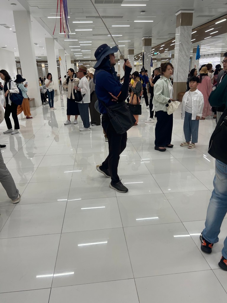 I still had to meet up with my tour guide Sam, whom I got separated from and I had difficulty finding his stick (or even the group itself). Most of the tour guides had a camera stick, fully extended, with a thing dangling from the end. Seems this is the universal “find me” stick here in Thailand’s tour guiding. And they had unique things on that end of the stick. Sam had the Thai colors on several strips at the end of his stick. Others had small teddy bears, yellow smileys, small ang pao envelopes, fish figures, elephant figures, tiny pom poms, tiny inflatable star. Many unique ones.
