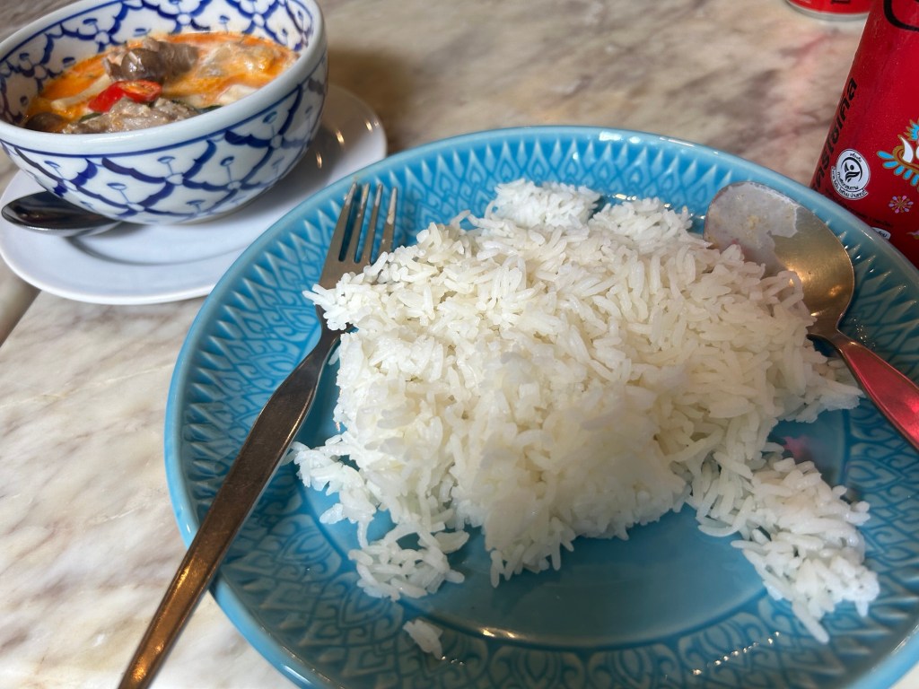 I also observed my tour group to see what they order – many of then went for Pad Thai too. And I assume the restaurant has some pride in a dish like that to have it not be made to order with a hot wok. So I thought, forget Pad Thai for now, I’d have the stew, thank you very much. I went for a curry dish and the mango sticky rice. It came within a few minutes of each other. Meanwhile, the Singaporean couple across my table ordered Pad Thai and they kept waiting for it. I was finished with my mango dessert when their meal finally came.