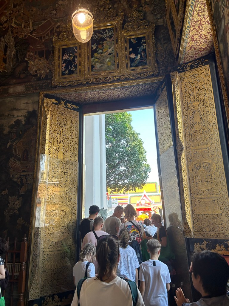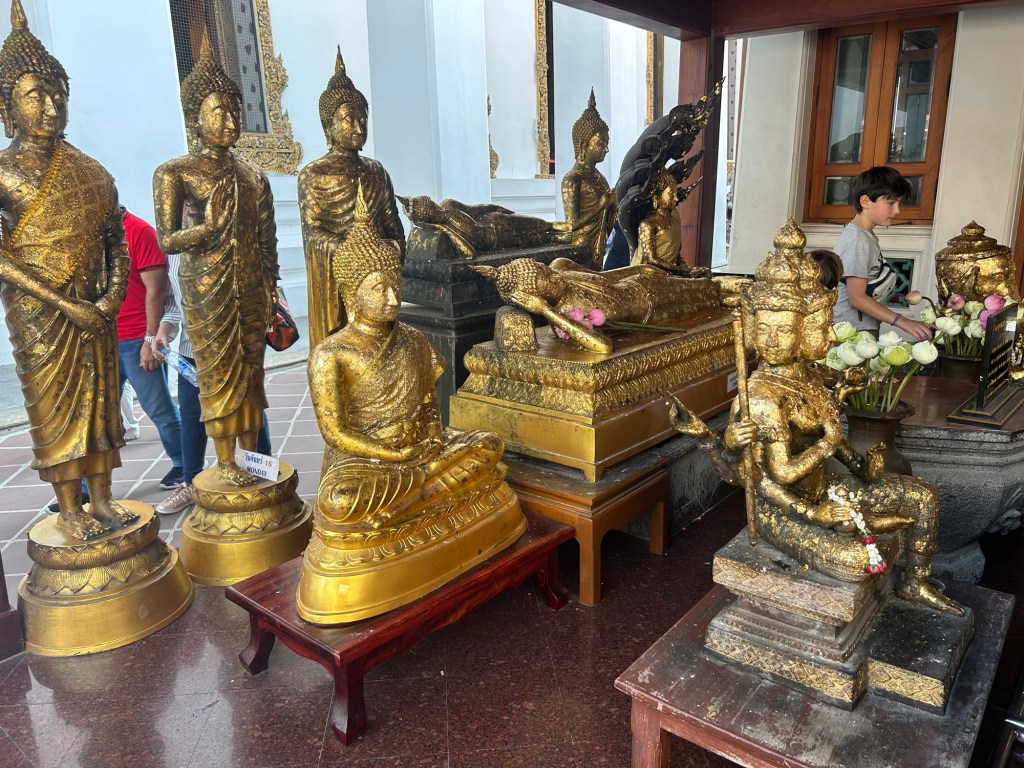 Sam did a brief tour storytelling of what the temple is, and it having the largest collection of Buddha images in Thailand. After around 5 or so minutes, he led us to the entrance of the temple where the main Buddha statue was in. And it being a place of religious reverence, we had to take off our shoes. Thankfully, outside the facility was some green reusable cloth bags where we could put our shoes in and just carry them in the temple. No missing shoe worry here.
