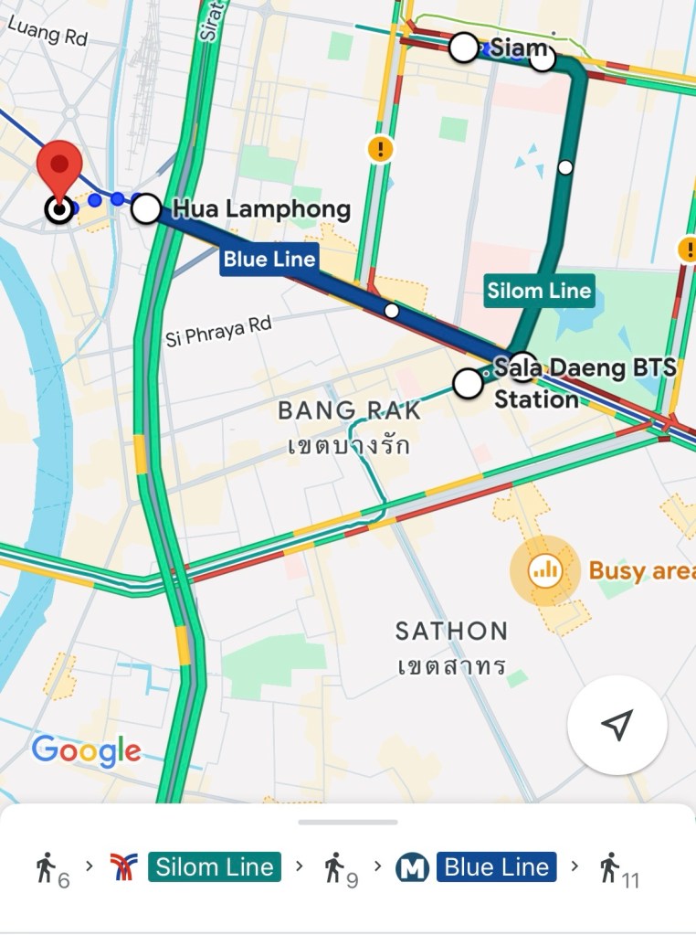 Plotting the course was made easy by Google Maps. Taxis are out of the question – I’ve heard enough tales of hapless tourists getting gouged. And Grab is no good either – I wanted to avoid the infamous Bangkok traffic, and 5PM wasn’t a nice time to test the roads. Train it was.