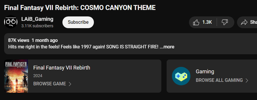 The one above is one of those channels whose provenance is making videos with game OST music. Just saying, I do peruse a lot of these channels, but I do have some minimum criteria – effort, crediting the musicians, and respecting the source material by linking the game. Lots of channels do all three. I used this channel as an example, because this one does none of those (yet).