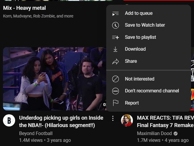 Another tool to make your YouTube homepage experience a whole lot better is using the videos’ internal options. These are available for users to tell YouTube’s algorithm which channels suck ass from their end. Granted, it’s not topic-based. It’s more channel-based. But again, something over nothing. Where else would I go for actual mass global content, DailyMotion?