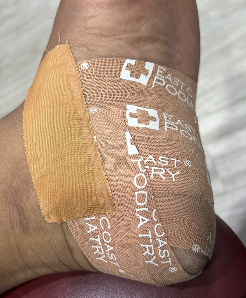 And then, I started to apply deodorant on the toes of my feet, then applied kinesio tape at the heel portion. Thankfully, I had a handy visual of how they are to be applied. But I didn’t know where to buy the thick tape they used in the clinic, so I settled on a quick one: from Decathlon.