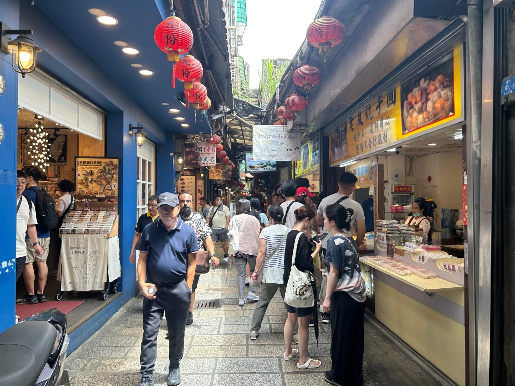 We then climbed ANOTHER set of stairs (six, but not as high as Batu’s) to what our tour guide noted was the “busy” part of Jiufen. Basically, the old street. By the steps at the end, she led us to a kind lady giving us taste cups filled with sweet iced teas of various nice flavors. I tasted every flavor she had there, but only one flavor stood out for me as “I want that”. Later, I thought. When I get back, I’ll buy one.