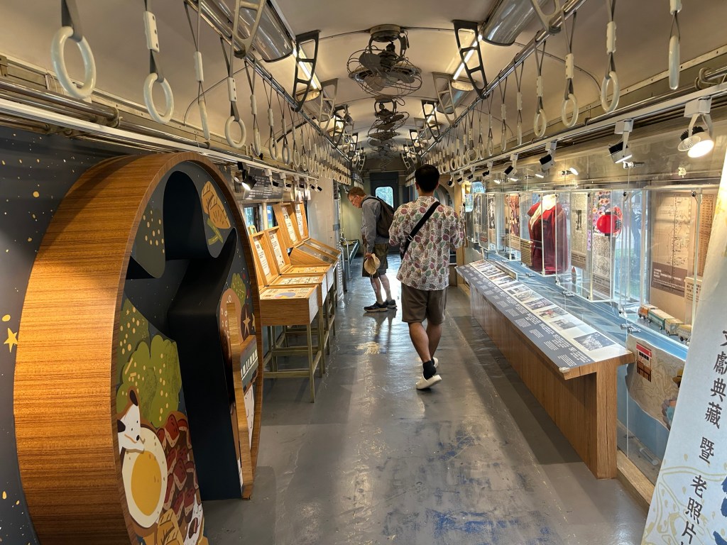 Xiao Hei then told us that this train station was made during the Japanese colonial period to help people come to Beitou and experience the hot springs, thus jumpstarting the Beitou hot spring tourism industry. But in the 80’s, the train station was disassembled and relocated somewhere else. In the late 90’s and early 00’s, the government and the local NGOs wanted the train station returned back to its original home as the country started to re-emphasize the significance of maintaining their cultural heritage. Eventually, things got rolling, and by 2017, the train station museum was completed and restored in Qixing Park, and finally opened to the public. That’s why the building kind of looked old-style but exterior was new-ish and fresh. And a couple of years later, another piece of history was returned to the place – a surviving train passenger car that once ferried passengers on the original line that the same station served, and restored to be an extension of the train station museum.