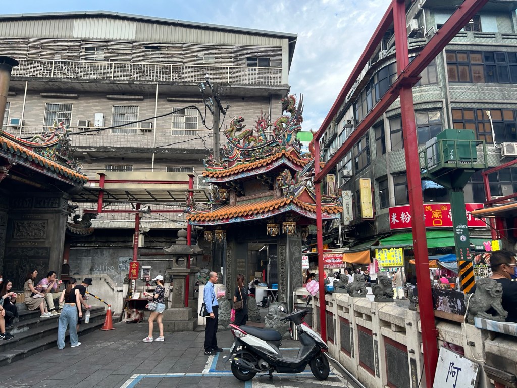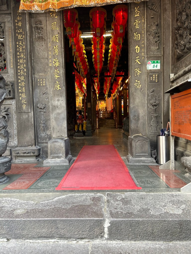 But first things first, I still had an unfinished bag of extra-large spicy chicken cutlet. I had to either polish this off or I throw it away. Nope, not throwing a warm bag of chicken. I looked for a place to sit down, relax, give my feet a few minutes of chill and finally eat this damn chicken. But none – tables occupied, hectic bustle of the crowd, no place to sit down. Save for one place I observed some locals went to with bags full of food – a nearby temple right across the market. It was the Shilin Cixian Temple.