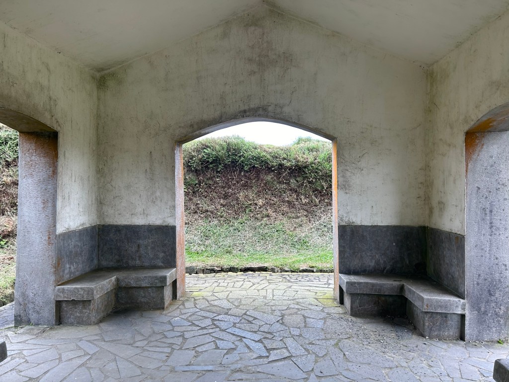 There was a handy visitor shed near the main upward trekking area, so I went in briefly to prep my umbrella a bit. And take pictures as well.