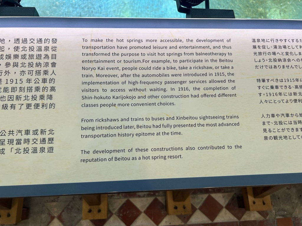 We soon reached an old building with red bricks on the outside. We soon learned from Xiao Hei that this was an old public hot spring bath house built during the old Japanese colonial period in Taiwan, and was restored and repurposed by local preservation efforts into a museum due to its cultural and historical significance. We arrived late into the afternoon, maybe around 3pm. We should be safe within the museum’s time of operations.