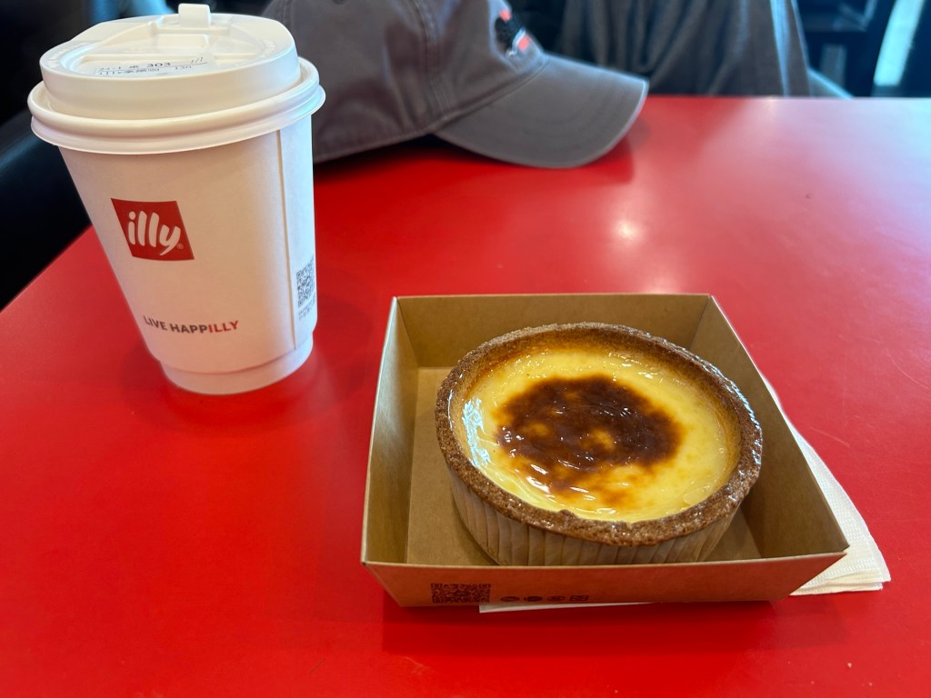 I checked myself in at the China Airlines counter, and fortunately the counter lady waved off the 0.85kg extra, and I was on my way to the departure area for processing. Long lines, but still decently moving along. After getting processed and checked, I was in. I decided to burn some calories by walking the area and see the shops. Nothing to buy anyway, I already bought what I liked days earlier. But near my flight’s assigned gate, I spent some chill time at an Illy’s. Cake and coffee should perk me up.