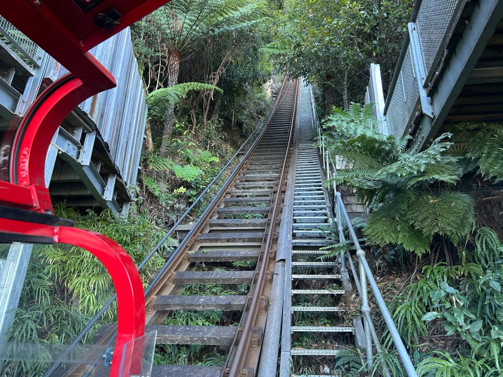 Going down was brisk but not that fast. Definitely you can feel the steepness of that inclined railway – I assume it’s around 3/4 away from 90 degrees – and I spent my brief time looking to my left and right, enjoying the surroundings. No photos here as I assume the risk of your phone dropping in the vehicle ain’t optimally suitable to any phone. I ain’t risking. Ride definitely wasn’t that smooth either – in a good way. Smoothness on par with some roller coaster rides. At least it contributed to the charming experience.