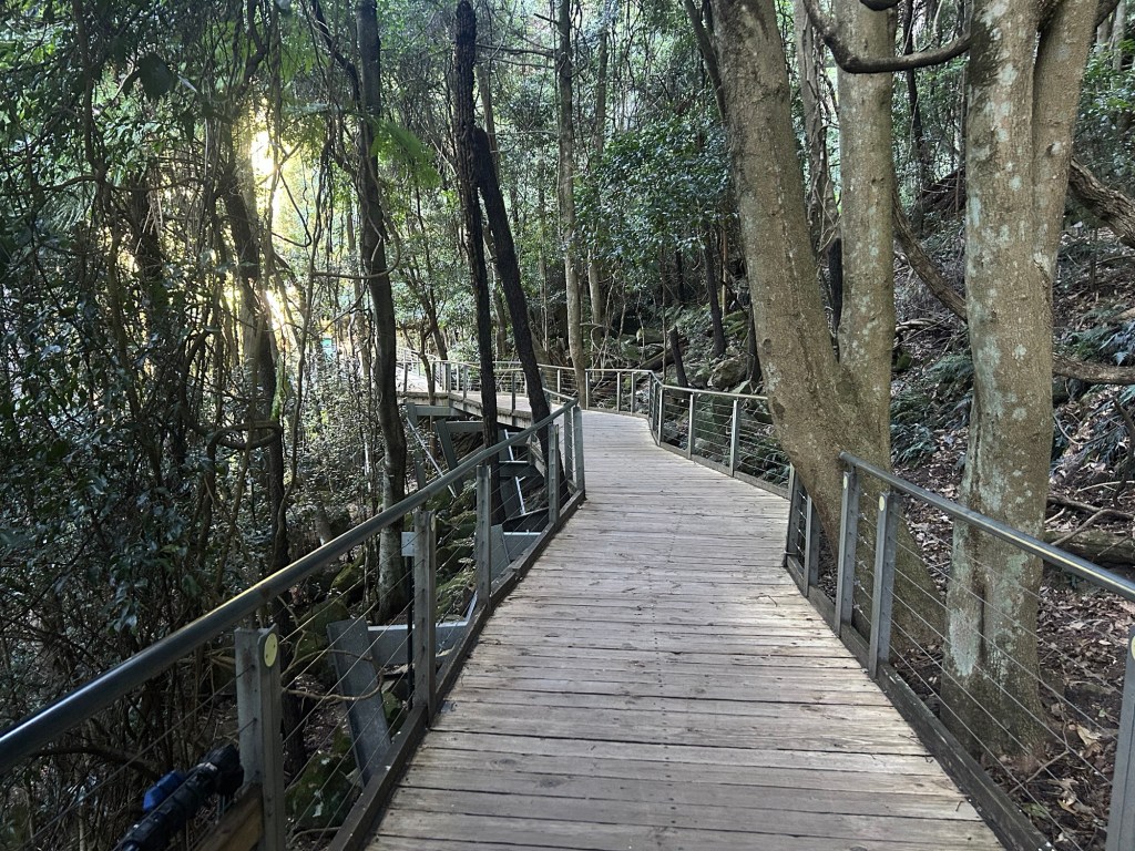 Once we all got out and the vehicle went back up (for some reason, some people in the back row wanted to take the ride up again), we went over these set of stairs, and off we went to the forest. There were two options for walkers – the short path (way less things to see but it directly led to the Cableway) or the much longer path (lots more to see which led deeper into the forest, but still ends up towards the Cableway). For me, I looked at my watch and thought of the alternatives. It was 10.45am, and ample time to decide. I have to be at the Leura Station by 1am, and the HOHO bus has two slots for it – 12.35pm and 1.35pm – so what do I do: spend a good hike in the forest and enjoy the brief solitudes, or catch the HOHO bus slot at 11.05am and spend the time at Leura Village?