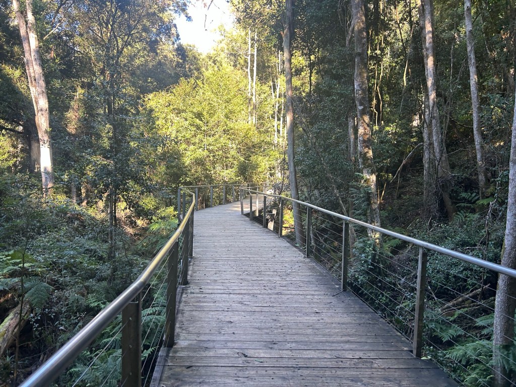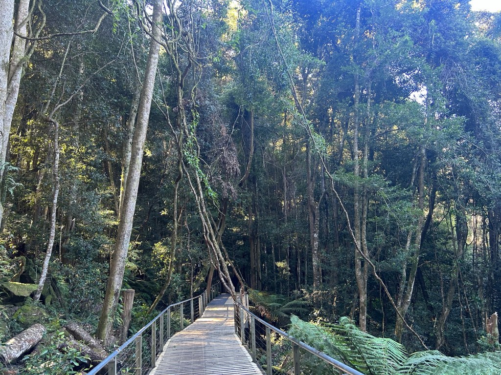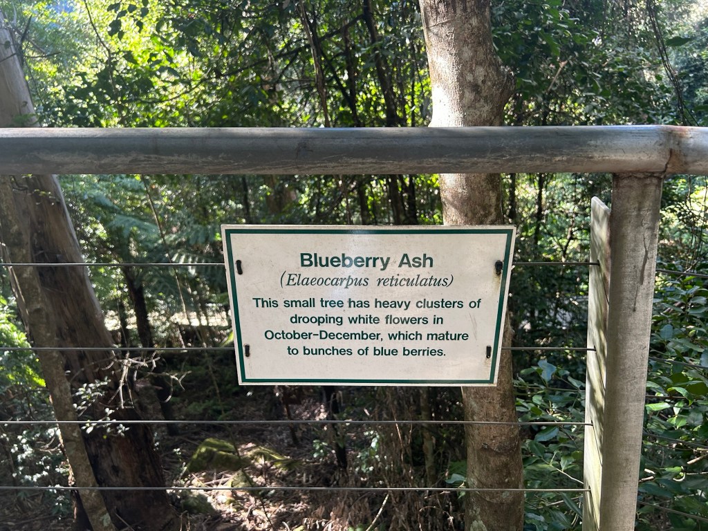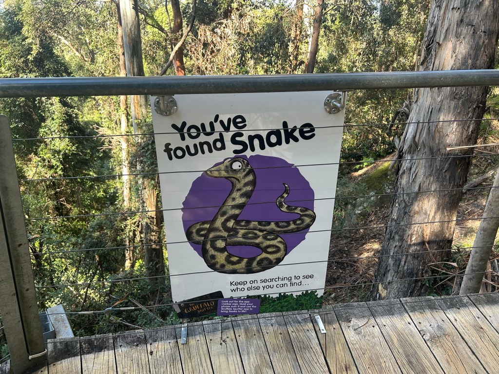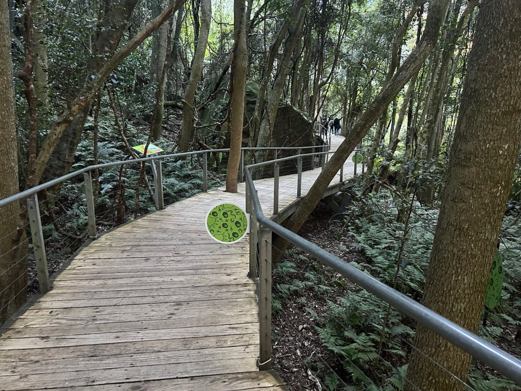 The pathways were wide sturdy structures of wood and steel, pleasant to walk on as well. Along the way, there were signs of two varieties – educational (the ones explaining things in the forest that might be of interest) and “for the kids” (the ones with cartoonized images of animals with child-friendly interactive equipment on hand). For the long path, there were also two options – the Lilli Pilli Link way (medium path) and the Yellow Robin Link way (longest path). I chose the Yellow Robin Link way, which descended a long way down.