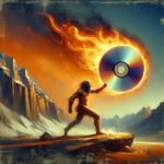 AI prompt: “burning CD, depict as a neolithic caveman painting art style”