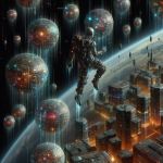 AI prompt: “futuristic human colonies floating in space, depict using cyberpunk mixed with raster graphics”